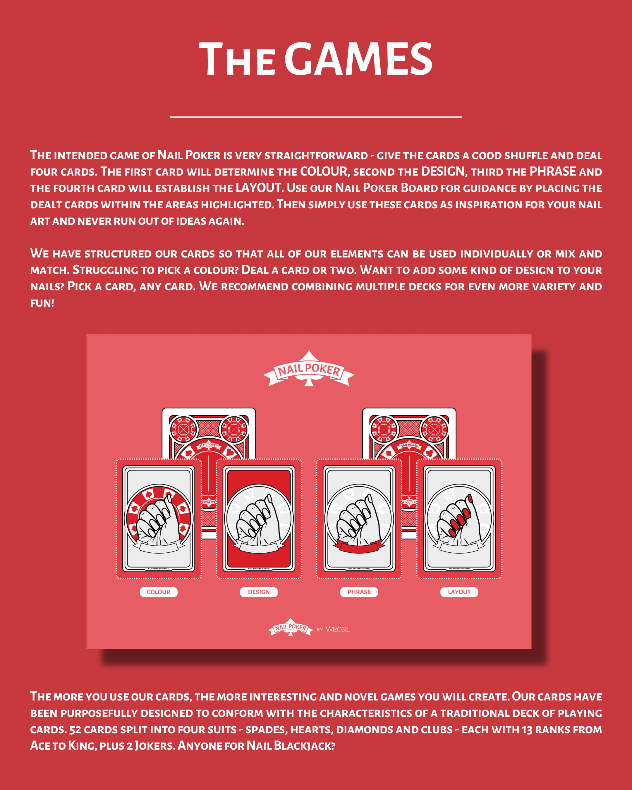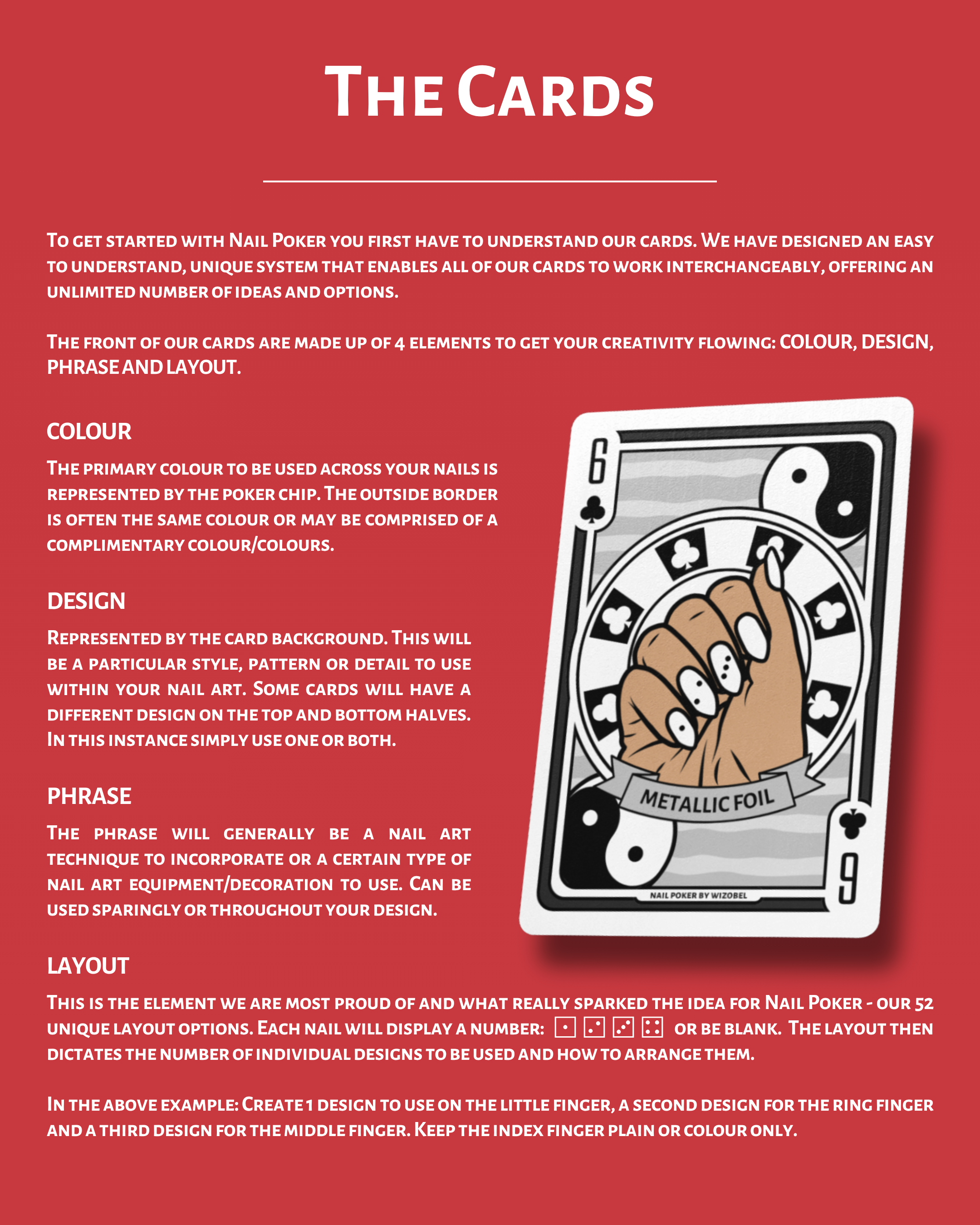 Welcome to Nail Poker! Discover our interchangeable cards that help you choose your nail colour, design, layout and more. Perfect for inspiration, training and content creation - Nail Poker ensures you’ll never run out of ideas again.
